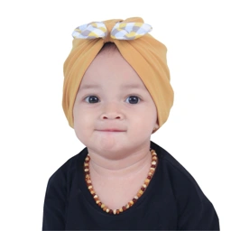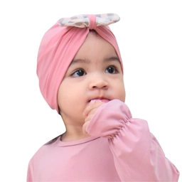 Turban baby dengan bahan super premium yaitu jersey import dan juga aksesoris pita bermotif dengan bahan katun rayon viscose di bagian depan yang menambah tingkat gemesin si baby 😍