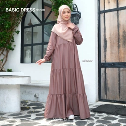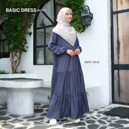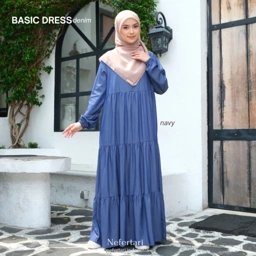 NEFERTARI Basic Dress Denim Gamis Katun Denim Dewasa Abaya Simple Panjang Busui Remaja
