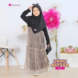 - Bahan gamis menggunakan kain jersey balon dan dipadukan dengan brokat cantily