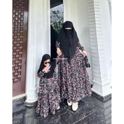 - Gamis menggunakan bahan Katun rayon motif & Rample susun