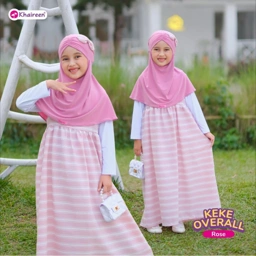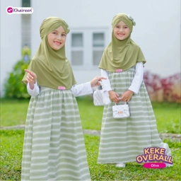 - Terdapat pita di bagian hijab (warna senada dengan overall)
