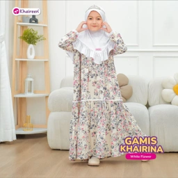 Outfit muslim BEST SELLER, gamis Khairina menggunakan bahan Katun rayon motif bunga-bunga yang memberikan keindahan pada helaian kainnya, sangat cocok digunakan saat jalan-jalan dan moment liburan lainnya.