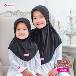 - Tali serut di belakang hijab untuk mengunci hijab agar nyaman digunakan anak ketika aktif berkegiatan sehari-hari